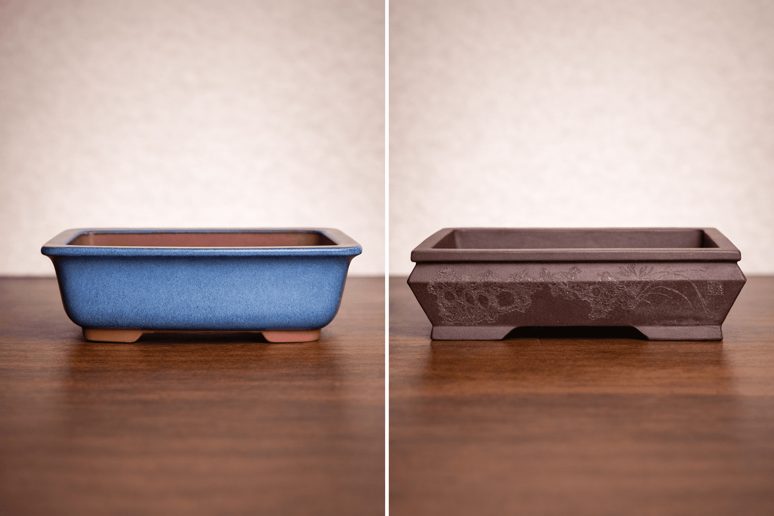 The internal length, width and depth define how much space the root system has to grow. A pot may appear generous from the outside, yet have thick walls that significantly reduce the usable interior space. For shallow bonsai styles, this difference can be crucial.